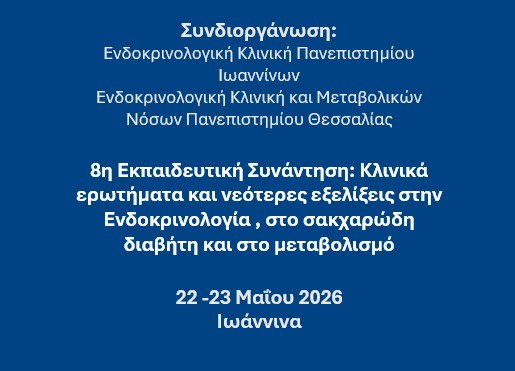 Ημερομηνία: 23 -25 Ιανουαρίου 2026 Τόπος διεξαγωγής: Αμφιθέατρο του ΓΝΑ "ο Ευαγγελισμός", Αμφιθέατρο “Χαράλαμπος Ρούσσος” , Αθήνα